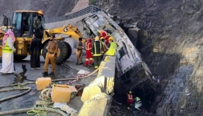 সৌদি আরবের মক্কায় ওমরাহ পালনের জন্য যাওয়ার সময় দক্ষিণাঞ্চলীয় আসির প্রদেশে একটি সেতুর রেলিং ভেঙে বাস উল্টে নিচে পড়ে গিয়ে আগুন ধরে যায়।