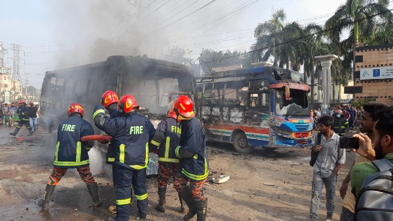 ওভার টেকিং প্রতিযোগিতায় নিথর যুবক, দুই বাসে আগুন