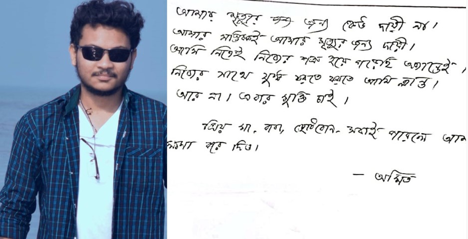 নিহতের সুইসাইড নোটগুলোর মধ্যে একটিতে লেখা ছিল,‘আমার মৃত্যুর জন্য কেউ দায়ী না। আমার মস্তিষ্কই আমার মৃত্যুর জন্য দায়ী। আমি নিজেই নিজের শত্রু হয়ে পড়েছি অজান্তেই। নিজের সঙ্গে যুদ্ধ করতে করতে আমি ক্লান্ত। আর না। এবার মুক্তি চাই। প্রিয় মা-বাবা, ছোট বোন সবাই পারলে আমাকে ক্ষমা করে দিও।’