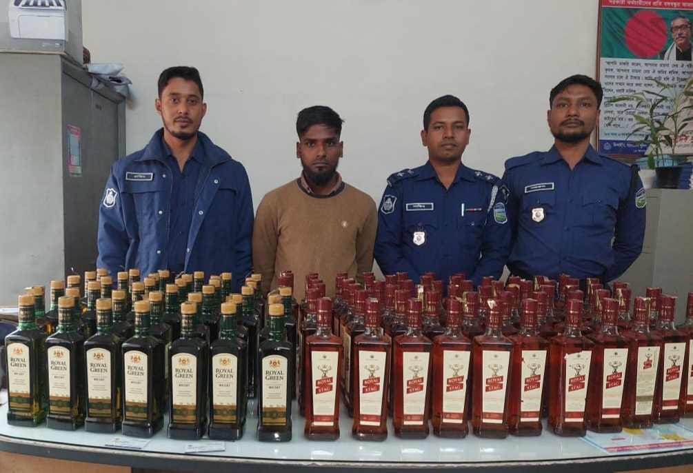 বিদেশী মদসহ মাদক ব্যবসায়ী গ্রেপ্তার