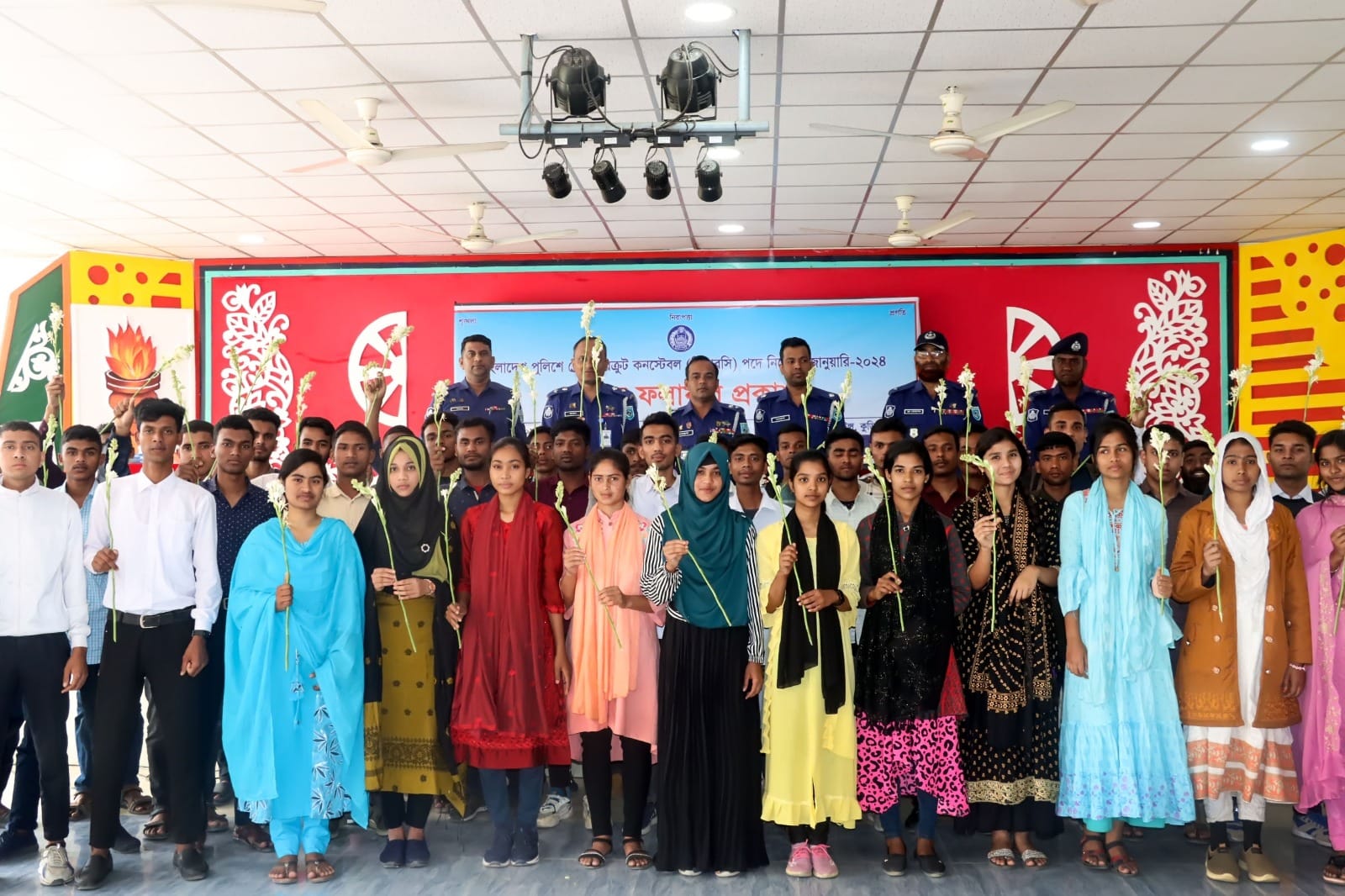 মনস্তাত্ত্বিক ও মৌখিক পরীক্ষার প্রাপ্ত নম্বরের ভিত্তিতে মেধাক্রম অনুযায়ী চূড়ান্তভাবে উত্তীর্ণ প্রার্থীদের নাম ও ফলাফল ঘোষণা করেন এবং জেলা পুলিশের পক্ষ থেকে ফুলেল শুভেচ্ছা ও অভিনন্দন জানানো হয়।