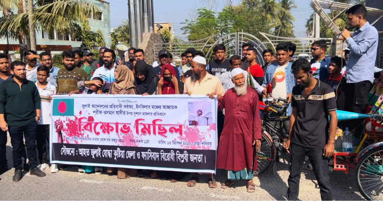 হাদির ওপর গুলিবর্ষণের প্রতিবাদে কুষ্টিয়ায় জুলাই যোদ্ধাদের বিক্ষোভ