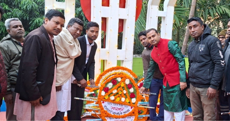 পূর্বধলায় কার্যক্রম নিষিদ্ধ সংগঠন আওয়ামী লীগের পুষ্পস্তবক অর্পণ
