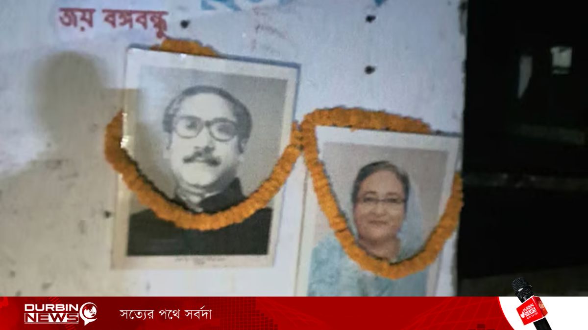 আওয়ামী লীগের পরিত্যক্ত কার্যালয়ে বঙ্গবন্ধু ও শেখ হাসিনার ছবি টাঙিয়ে ফুলের মালা