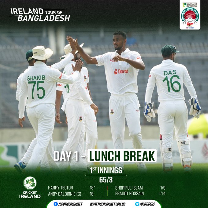 প্রথম সেশনেই আইরিশদের চেপে ধরেছে টাইগাররা, লাঞ্চের আগেই নেই ৩ উইকেট
