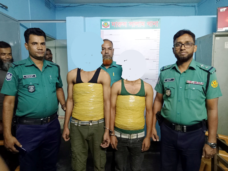 ডিএমপির দারুসসালাম জোনের সহকারী পুলিশ কমিশনার মফিজুর রহমান পলাশ জানান, ঢাকা মহানগর এলাকায় অভিযান পরিচালনাকালীন তথ্য আসে দুইজন ব্যক্তি গাঁজাসহ গাবতলী বাস টার্মিনাল এলাকায় অবস্থান করছে। এমন তথ্যের ভিত্তিতে অভিযান চালিয়ে শরীরে অভিনব কৌশলে গাঁজা বহনকালে আলতাব ও ছাদেক নামের দুইজনকে গ্রেফতার করে। এ সময় তাদের শরীরে স্কসটেপ দিয়ে প্যাঁচানো অবস্থায় ৪ কেজি গাঁজা উদ্ধার করা হয়।