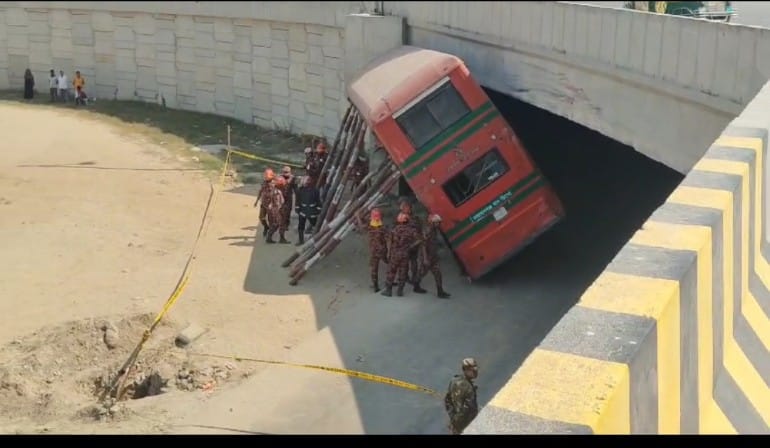 আন্ডারপাসে বাস আটকে ৪ জনের অবস্থা আশঙকাজনক