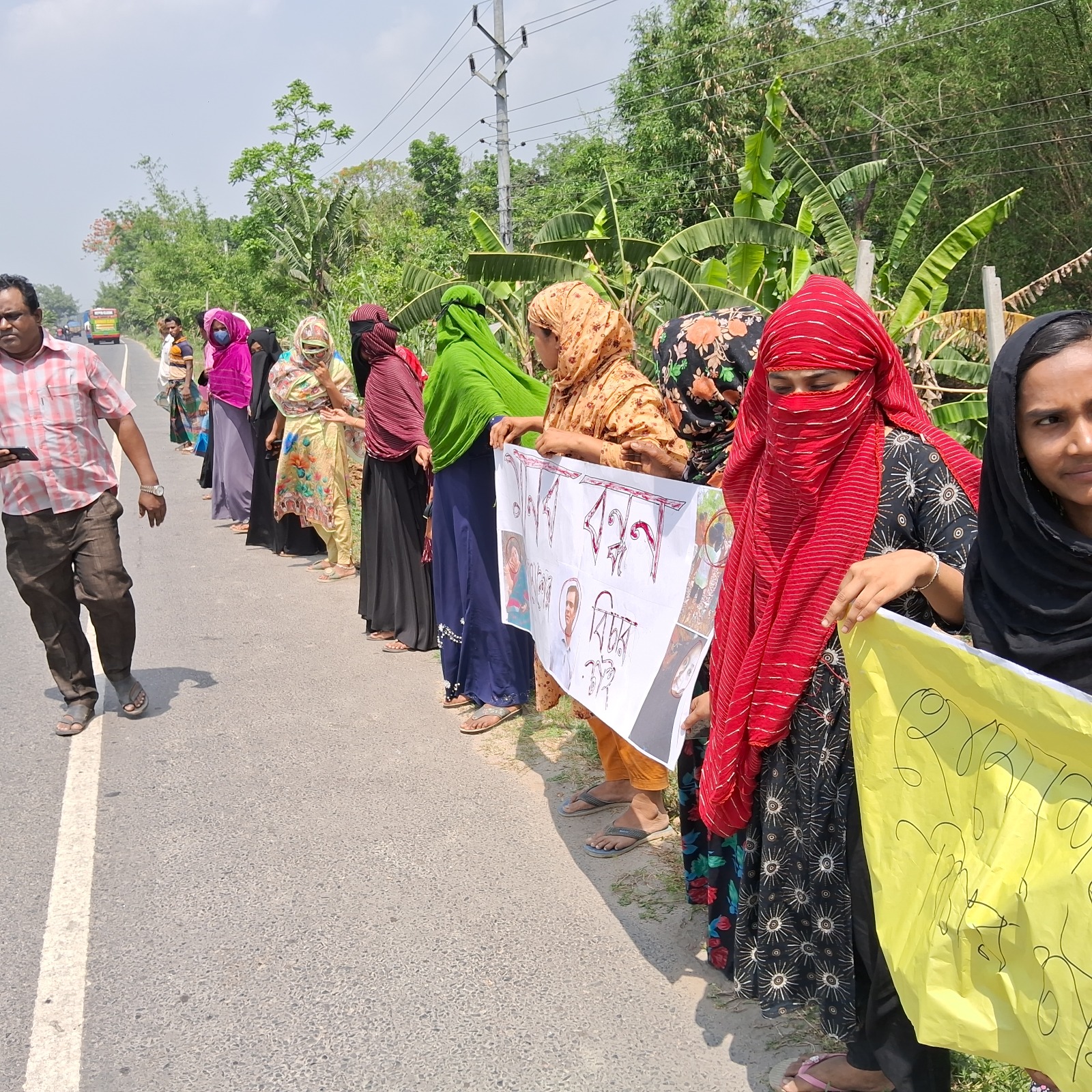 গোয়ালন্দে প্রবাসীর স্ত্রীর ন্যায় বিচারের দাবিতে মানববন্ধন
