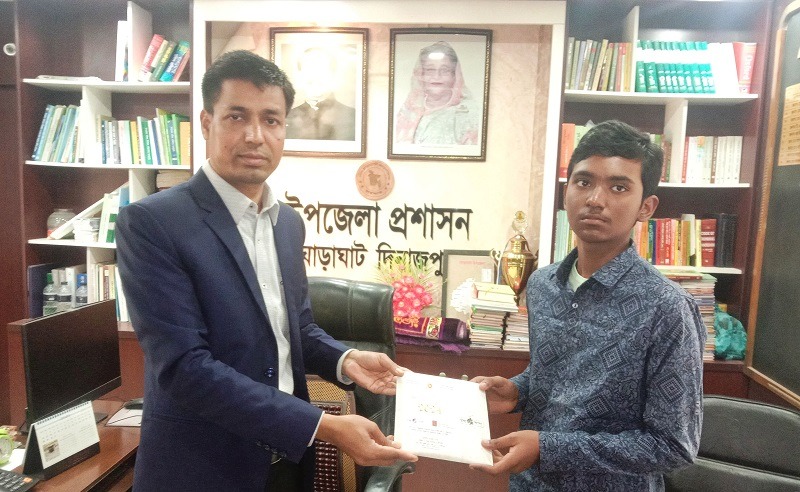 ক্যাডেট ভর্তি পরীক্ষায় উত্তীর্ণ হওয়ায় মেধাবী আরাফাতকে ইউএনর শুভেচ্ছা