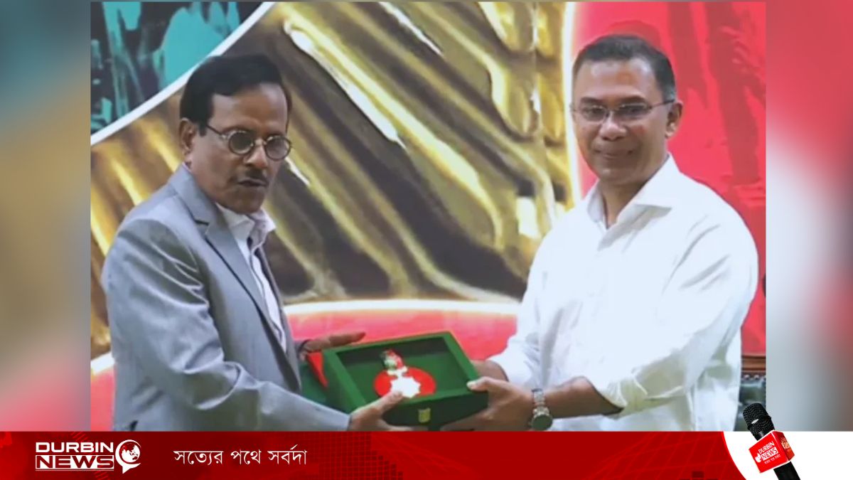 প্রধানমন্ত্রী তারেক রহমানের হাত থেকে স্বাধীনতা পুরস্কার নিচ্ছেন হানিফ সংকেত (বামে) । ছবি: সংগৃহীত