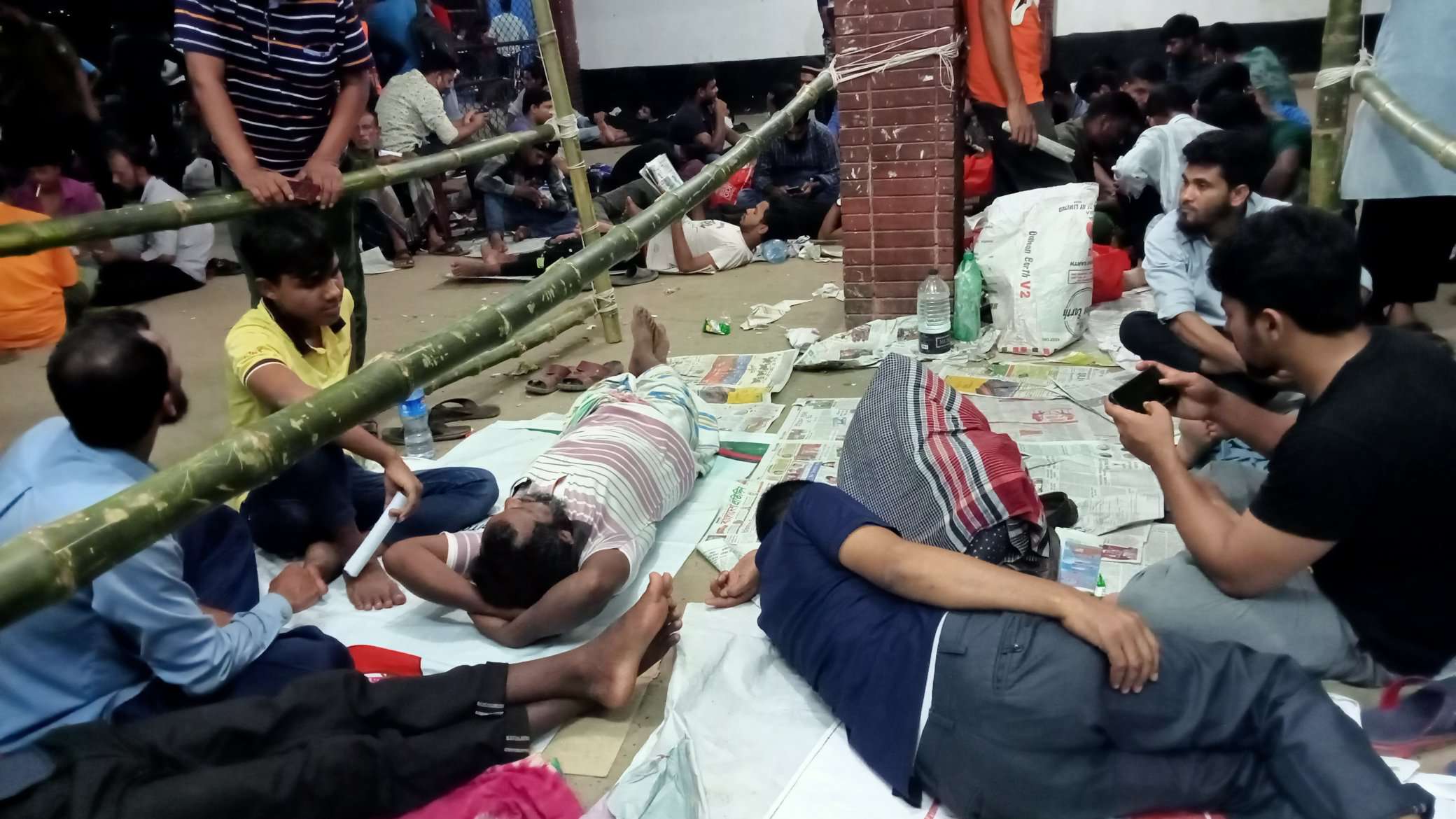 আবার কেউ কেউ ক্লান্ত, শ্রান্ত শরীর নিয়ে শুয়ে রয়েছেন কমলাপুর রেল স্টেশনে।