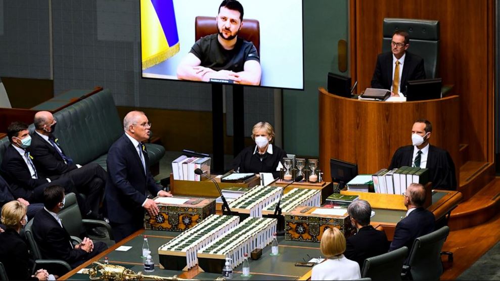 অস্ট্রেলিয়ার পার্লামেন্টে ইউক্রেনীয় প্রেসিডেন্ট ভলোদিমির জেলেনস্কির বক্তব্য অনুসরণ করে অস্ট্রেলিয়ার প্রধানমন্ত্রী স্কট মরিসন ইউক্রেনে কয়েকটি সাঁজোয়া বুশমাস্টার যান পাঠানো হবে বলে জানিয়েছেন।