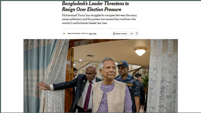 নির্বাচন নিয়ে চাপ, পদত্যাগের হুমকিতে ড. ইউনূস: নিউইয়র্ক টাইমসের প্রতিবেদন