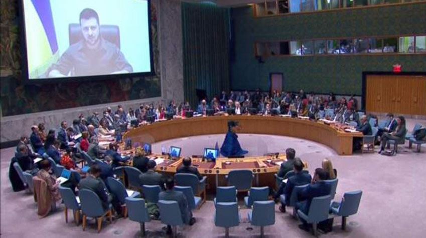 মঙ্গলবার জাতিসংঘ নিরাপত্তা পরিষদে দেয়া ভিডিও বার্তায় দাবি উত্থাপন করেন জেলেনস্কি। কাতার ভিত্তিক সংবাদ মাধ্যম আল-জাজিরা এক প্রতিবেদনে এ কথা জানায়।
