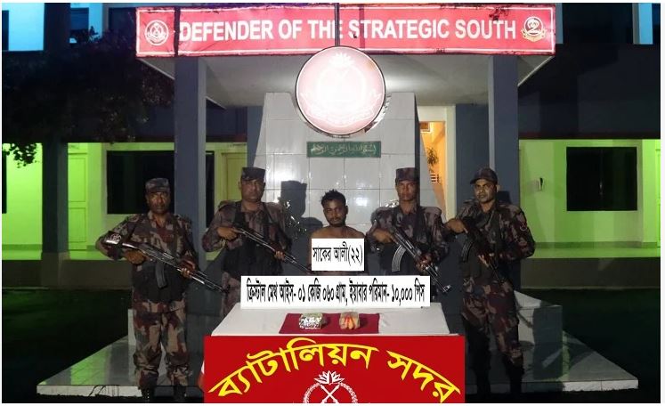 লে. কর্নেল শেখ খালিদ মোহাম্মদ ইফতেখার জানান, রোববার রাতে বিজিবি টেকনাফ ব্যাটালিয়ন গোপন সংবাদ পায় রাতের যে কোন সময় ওমরখাল এলাকা দিয়ে মাদকের একটি বড় চালান মিয়ানমার থেকে বাংলাদেশে ঢুকতে পারে। তথ্য পেয়ে বিজিবির দুটি বিশেষ দল কয়েকটি উপদলে বিভক্ত হয়ে কয়েকটি স্থানে অবস্থান নেয়। রাত সোয়া ১২টার দিকে বিজিবির দল লক্ষ্য করে একজন নাফ নদী সাঁতরে মিয়ানমার থেকে বাংলাদেশে প্রবেশ করছে। পরে শূন্য রেখা অতিক্রম করে নদীর তীরে আসলে তাকে আটক করে বিজিবি। এ সময় তার শরীর তল্লাশি করে শরীরের বিভিন্ন স্থানে বাঁধা অবস্থায় ১ কেজি ৬০ গ্রাম ক্রিস্টাল মেথ আইস ও ১০ হাজার পিস ইয়াবা উদ্ধার করা হয়।