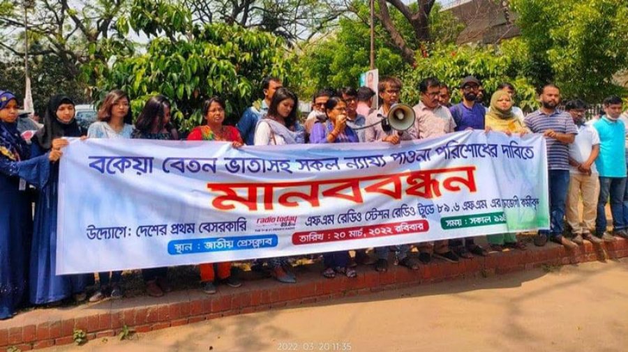 বকেয়া বেতন ভাতার দাবিতে রেডিও টুডে’র কর্মীদের মানববন্ধন
