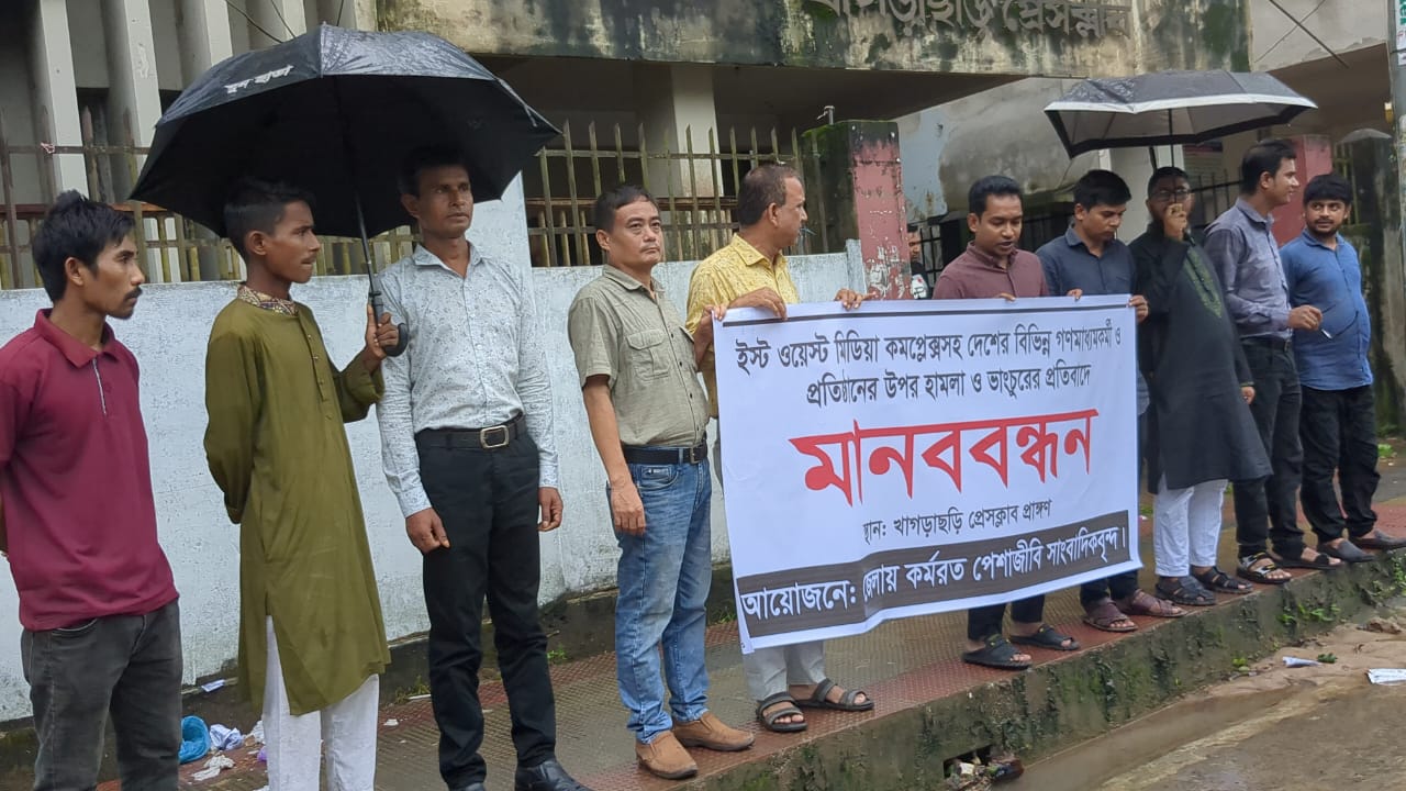খাগড়াছড়িতে সাংবাদিকদের উপর হামলার প্রতিবাদে মানববন্ধন