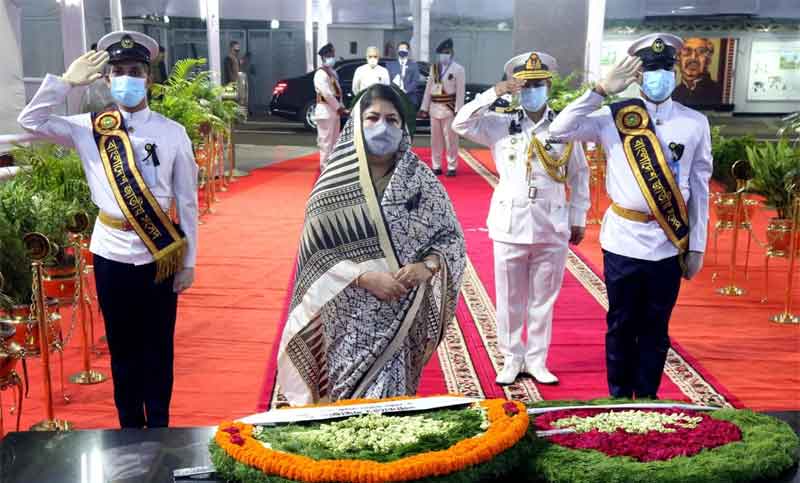 বৃহস্পতিবার সকালে রাজধানীর ধানমন্ডি ৩২ নম্বরে ঐতিহাসিক বঙ্গবন্ধু ভবন প্রাঙ্গণে জাতির পিতা বঙ্গবন্ধু শেখ মুজিবুর রহমানের প্রতিকৃতিতে শ্রদ্ধা নিবেদন করেন তিনি।