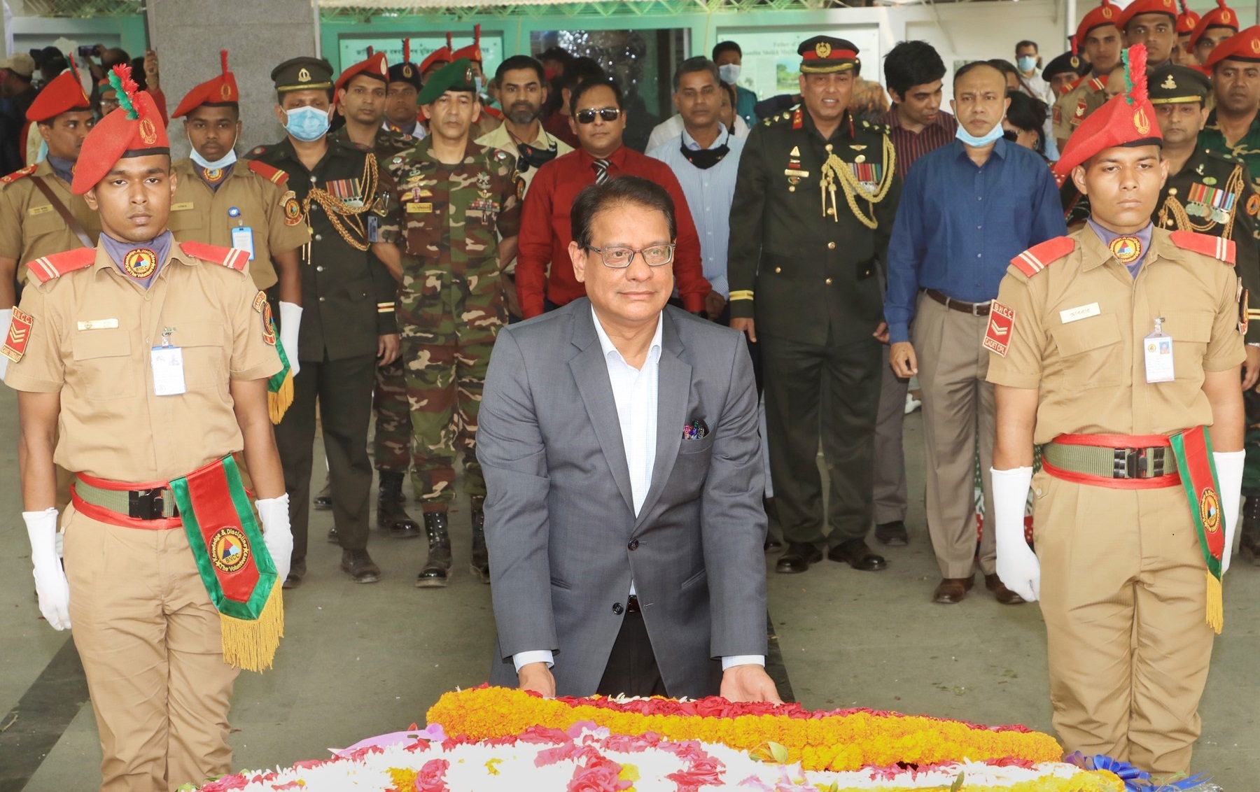 বঙ্গবন্ধুর প্রতিকৃতিতে প্রতিরক্ষা সচিবের শ্রদ্ধা