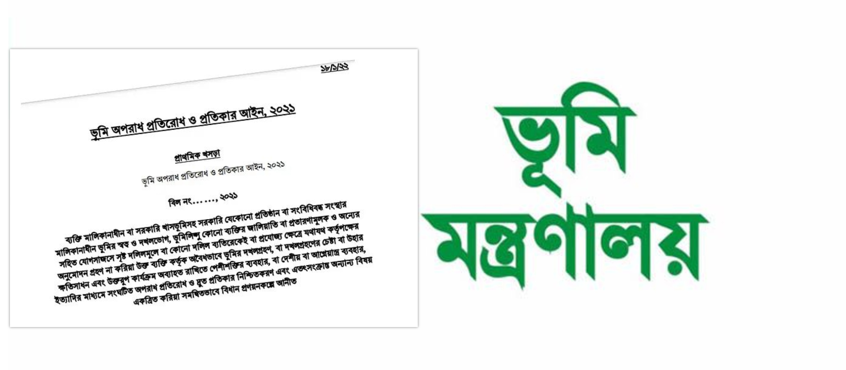 যখন কোন ফ্ল্যাট কেনার পর তা হস্তান্তর করা হয় না, দলিলের মাধ্যমে যেকোনো জমি নিয়ে জালিয়াতি, অবৈধভাবে খাসজমি দখলসহ এ ধরনের অপরাধের শাস্তি দ্রুত নিশ্চিতে ভূমি অপরাধ প্রতিরোধ ও প্রতিকার আইন, ২০২১ শিরোনামে আইনের প্রাথমিক খসড়া করেছে ভূমি মন্ত্রণালয়।