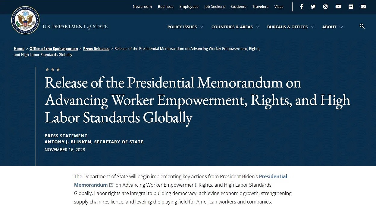 চিঠিতে উল্লেখ করা হয়, এই নীতির কারণে বিদেশে যুক্তরাষ্ট্রের দূতাবাসগুলো শ্রম–সংক্রান্ত বিষয়গুলো নিয়ে সরাসরি কাজ করতে পারবে। তাই এই নীতি আগ্রহী মার্কিন দূত বা মিশনগুলোকে দেশি বা অভ্যন্তরীণ বিষয়ে হস্তক্ষেপ করতে উৎসাহিত করতে পারে।