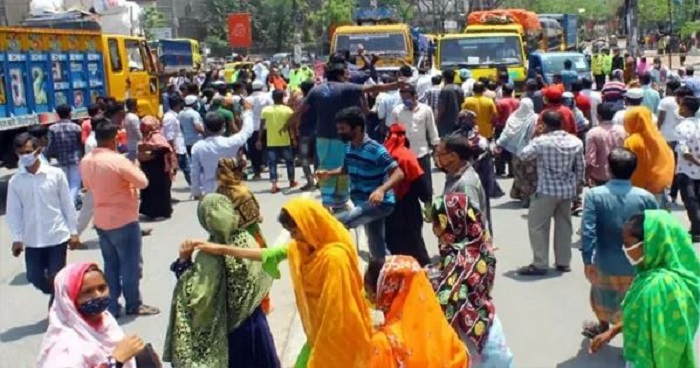 না'গঞ্জে বকেয়া বেতনের দাবিতে রাস্তায় শতাধিক শ্রমিক