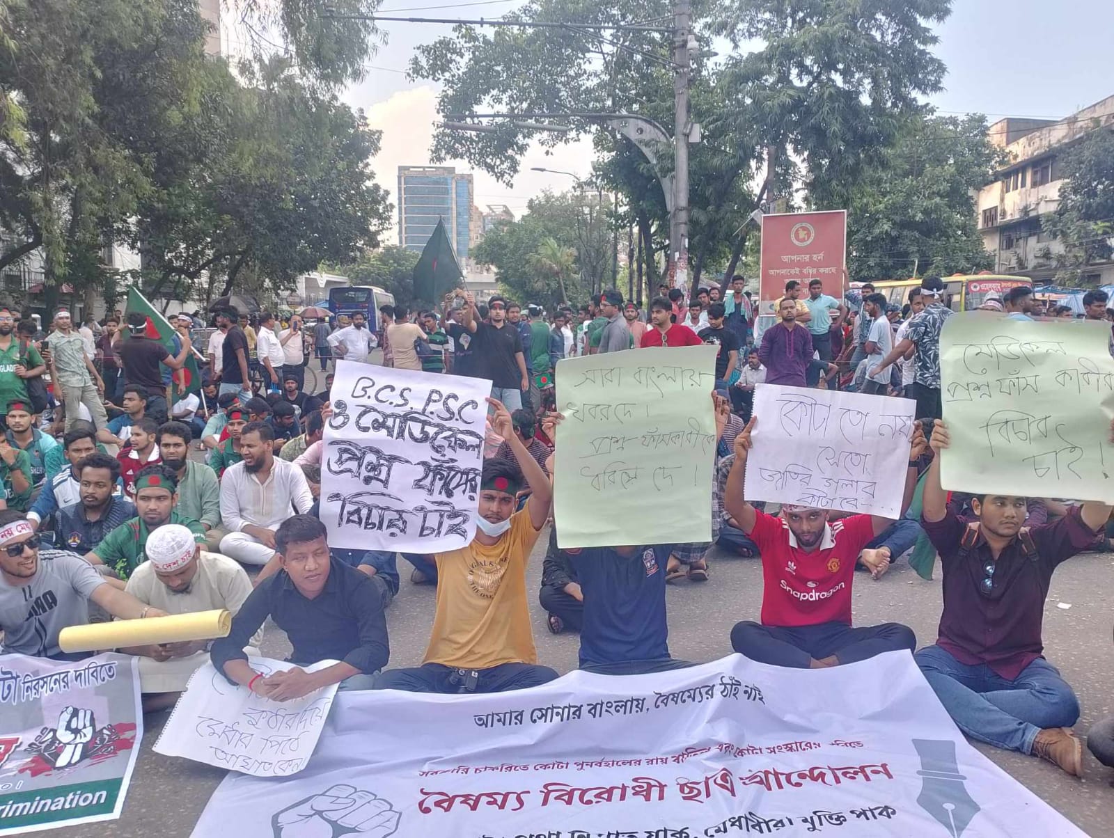 কোটা আন্দোলনের মধ্যেই গণমাধ্যমে বাংলাদেশ সিভিল সার্ভিসের (বিসিএস) পরীক্ষাসহ গত ১২ বছরে ৩০টি নিয়োগ পরীক্ষার প্রশ্নফাঁসের চিত্র উঠে আসে। এতে দেশব্যাপী আলোচনার সৃষ্টি হয়। এ প্রশ্নফাঁসের ঘটনায় রাজধানীর পল্টন থানার মামলায় ১৭ আসামি গ্রেপ্তার হয়েছে। এছাড়া কয়েকদিন আগেই জবি শাখা ছাত্রলীগের সাধারণ সম্পাদক এস এম আকতার হোসাইন মেসেঞ্জারে সরাসরি মেডিকেলের ভর্তি পরীক্ষার প্রশ্নফাঁস করার তথ্যও জাতীয় গণমাধ্যমগুলোতে উঠে আসে। এতে বিশ্ববিদ্যালয় ক্যাম্পাসে চাঞ্চল্যকর অবস্থার সৃষ্টি হয়। প্রশ্নফাঁসের মতো গুরুতর রাষ্ট্রবিরোধী এই দুই ঘটনার বিচার চেয়ে কোটা আন্দোলনে ক্ষোভ প্রকাশ করে প্লেকার্ড হাতে দাঁড়াতে দেখা গেছে শিক্ষার্থীদের।