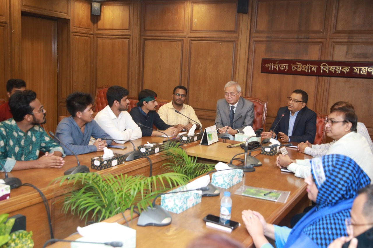 আজ ঢাকায় বাংলাদেশ সচিবালয়ে পার্বত্য চট্টগ্রাম বিষয়ক মন্ত্রণালয়ের সভাকক্ষে পার্বত্য চট্টগ্রাম বিষয়ক মন্ত্রণালয়ের উপদেষ্টা জনাব সুপ্রদীপ চাকমা’র সাথে বৈষম্যবিরোধী ছাত্র আন্দোলনে অংশ নেওয়া পার্বত্য চট্টগ্রামের ছাত্ররা স্বউদ্যোগে মন্ত্রণালয়ের উপদেষ্টার সাথে সাক্ষাৎকালে উপদেষ্টা এসব কথা বলেন।