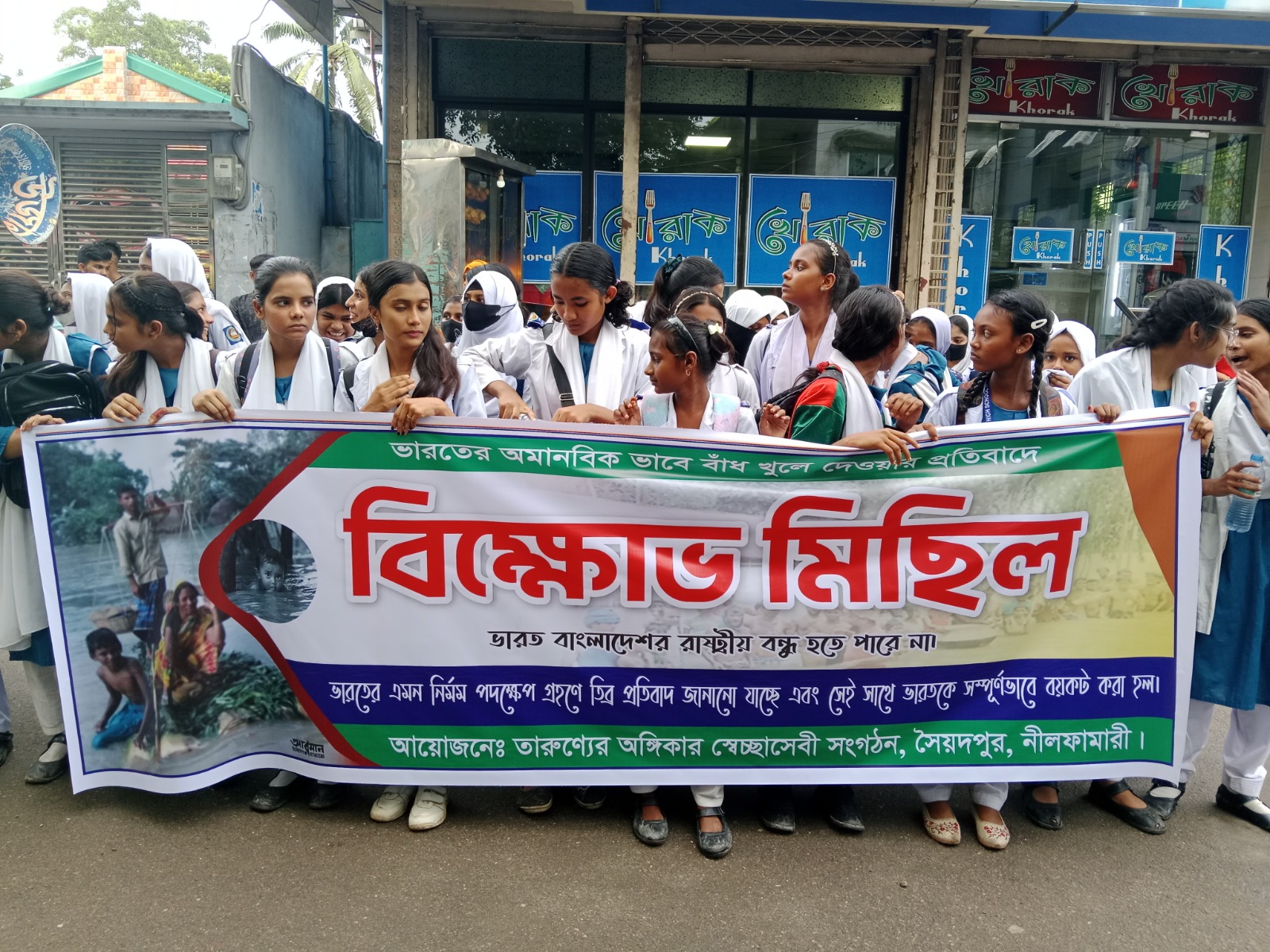 ভারতের অমানবিক ভাবে বাঁধ খুলে বন্যা সৃষ্টির প্রতিবাদে সৈয়দপুরে বিক্ষোভ