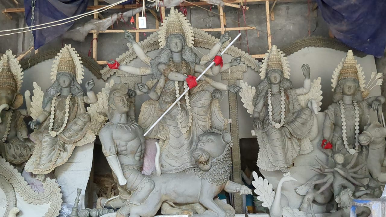 মৃৎশিল্পীদের নিপুণ হাতে খরের বেণী, কাদামাটি, বাঁশ, রং ও তুলি দিয়ে গড়ে তুলছেন একেকটি অসাধারণ প্রতিমা। এ ছাড়া দেবী দুর্গা, গণেশ, লক্ষ্মী, সরস্বতী, কার্তিককে আকৃতি দিতে দিন - রাত পরিশ্রম করছে যাচ্ছেন তারা। একই ভাবে পূজার বাকি বেশীদিন না থাকায় পূজার পেন্ডেল, সাজসজ্জা থেকে শুরু করে কিভাবে পূজায় নতুন রূপ দেয়া যায় নানান কাজে ব্যস্ত হয়ে পরেছেন আয়োজক কমিটিও। আগামী বুধবার (৯ অক্টোবর) মহাষষ্ঠীর মধ্য দিয়ে শুরু হবে শারদীয় দুর্গাপূজা। বুধবার (২ অক্টোবর) মহালয়ার মধ্য দিয়ে শুরু হয়েছে দেবীপক্ষ।