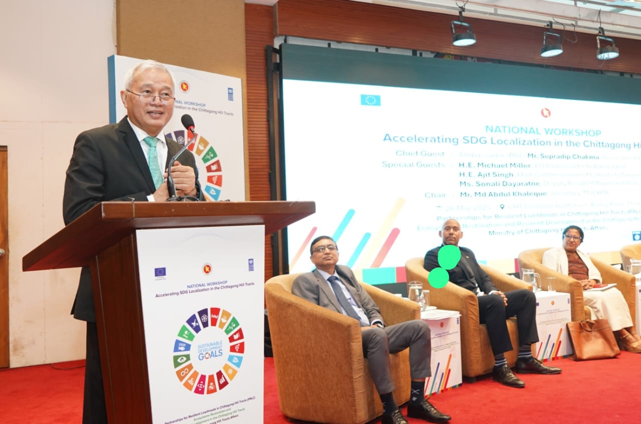 আজ রাজধানীর বেইলি রোডে পার্বত্য চট্টগ্রাম কমপ্লেক্স অডিটোরিয়ামে পার্বত্য চট্টগ্রাম বিষয়ক মন্ত্রণালয়ের আয়োজনে Workshop on "SDG Localization Acceleration in CHT শীর্ষক অনুষ্ঠানে প্রধান অতিথির বক্তব্যে পার্বত্য উপদেষ্টা রাষ্ট্রদূত (অব.) সুপ্রদীপ চাকমা এসব কথা বলেন।