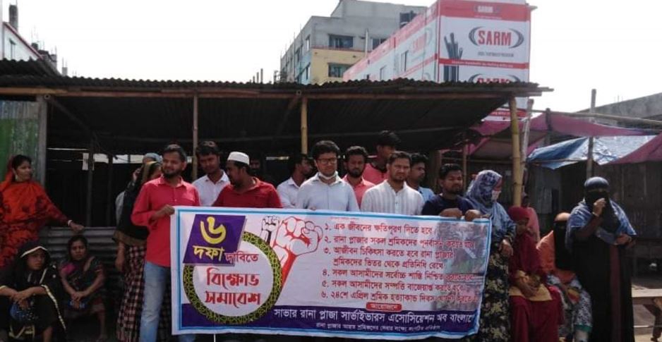 ‘সাভার রানা প্লাজা সাইভারভার্স অ্যাসোসিয়েশন অব বাংলাদেশের’ ব্যানারে এই বিক্ষোভ কর্মসূচি পালন করা হয়। এই সংগঠনটি রানা প্লাজা ধসে আহত শ্রমিকদের নিয়ে গঠিত।