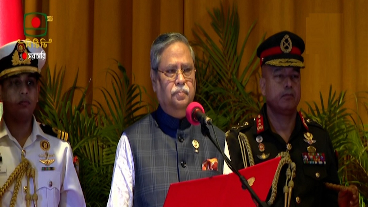 দেশের ৫২ বছরের ইতিহাসে প্রথমবারের মতো এক রাষ্ট্রপতিকে বিদায় জানিয়ে আরেকজনের কাছে দায়িত্ব অর্পণ করা হয়েছে সোমবার (২৪ এপ্রিল)। এদিন বেলা ১১টায় বঙ্গভবনের দরবার হলে শপথ অনুষ্ঠানে নবনির্বাচিত রাষ্ট্রপতিকে শপথবাক্য পাঠ করান জাতীয় সংসদের স্পিকার শিরীন শারমিন চৌধুরী। রীতি অনুযায়ী শপথ শেষে পরিবেশিত হয় জাতীয় সঙ্গীত।