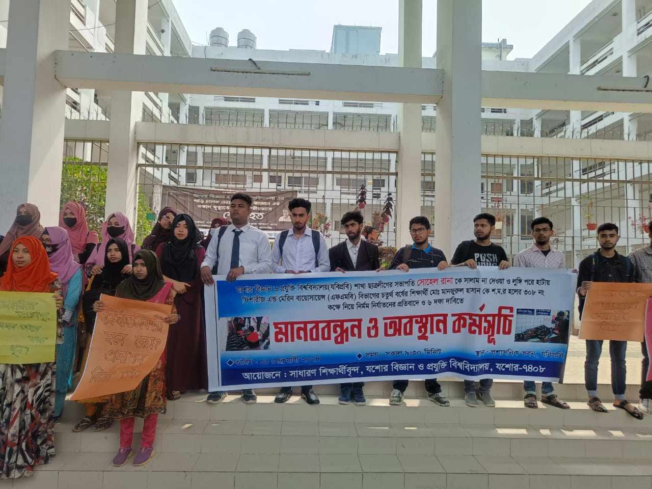 ৩। ৬ ফেব্রুয়ারি ফিশারীজ এন্ড মেরিন বায়োসায়েন্স (এফএমবি) বিভাগের ছাত্রীদের সঙ্গে খারাপ আচরণ ও করুচিপূর্ণ মন্তব্যকারীদের বিচারের আওতায় আনতে হবে।
