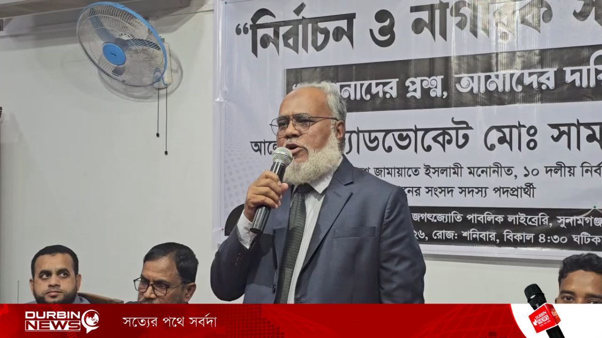 শনিবার বিকেল সাড়ে ৪টায় সুনামগঞ্জ শহরের শহীদ মুক্তিযোদ্ধা জগৎজ্যোতি পাবলিক লাইব্রেরির মিলনায়তনে অনুষ্ঠিত “নির্বাচন ও নাগরিক সংলাপ” শীর্ষক এক মতবিনিময় ও আলোচনা সভায় সাংবাদিকদের প্রশ্নের জবাবে তিনি এ কথা বলেন। সভাটির আয়োজন করে বাংলাদেশ জামায়াতে ইসলাম সুনামগঞ্জ জেলা।