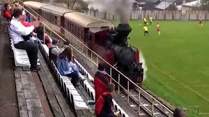ফুটবল খেলা চলাকালীন মাঠের এক পাশ দিয়ে ধোঁয়া ছাড়তে ছাড়তে আর বাঁশি বাজাতে বাজাতে চলতে থাকে পুরনো ধাঁচের এই স্টিম ইঞ্জিন চালিত ট্রেনটি।