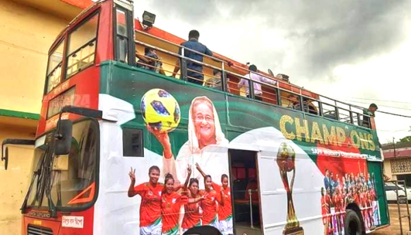 খোলা বাসের এই উচ্ছ্বলতা দেখে নীতিনির্ধারকরা মনে করছেন, এভাবেই দেশের নারী ফুলবলারদের প্রয়োজনীয় সুবিধা এবং অনুপ্রেরণা দিলে আরো শিরোপা আসবে।