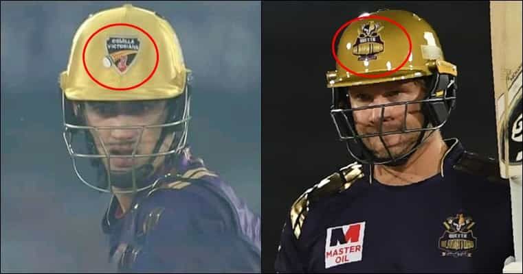 কুয়েটার হেলমেটের জায়গায় তাড়াহুড়া করে কুমিল্লার হেলমেট মাথায় দিয়ে, মাঠে নেমে গিয়েছিলেন তিনি। তাই বলে এই দৃশ্য সমর্থকদের দৃষ্টি এড়ায়নি।