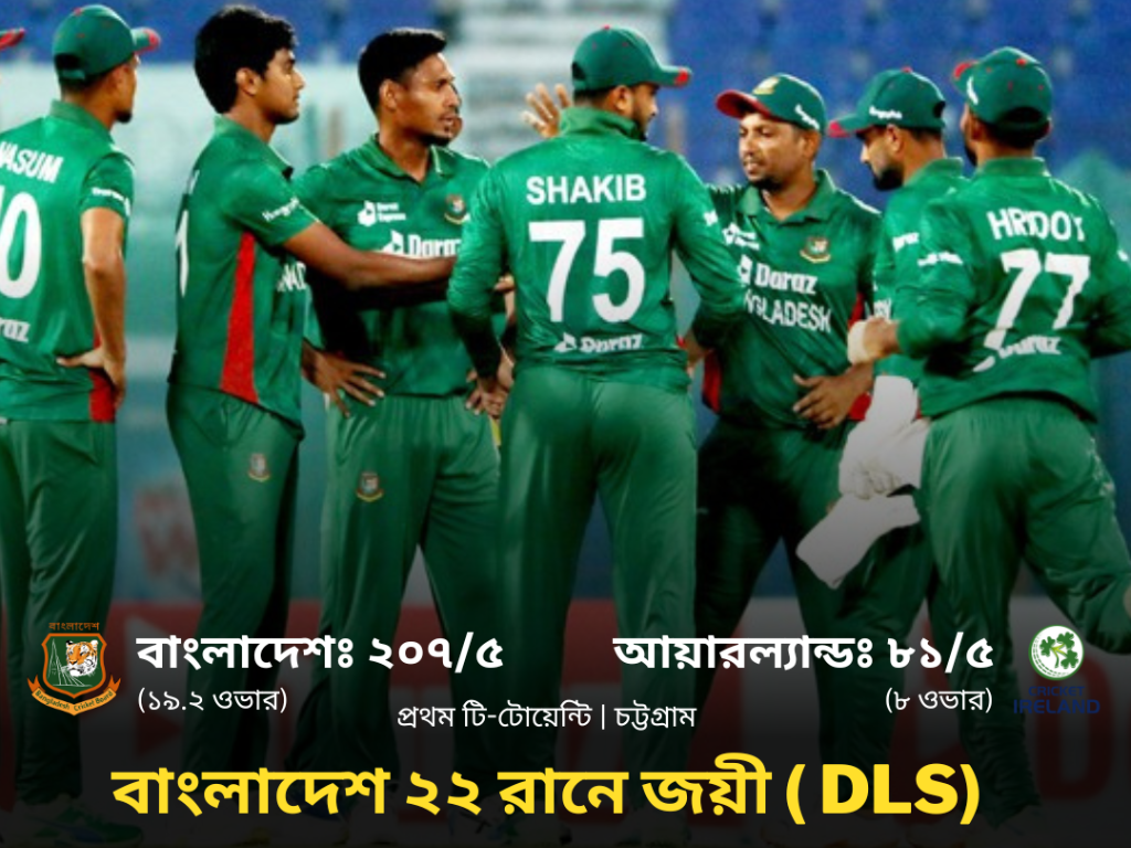 তাসকিন তান্ডবে প্রথম টি-টোয়েন্টিতে ২২ রানে জিতলো বাংলাদেশ।