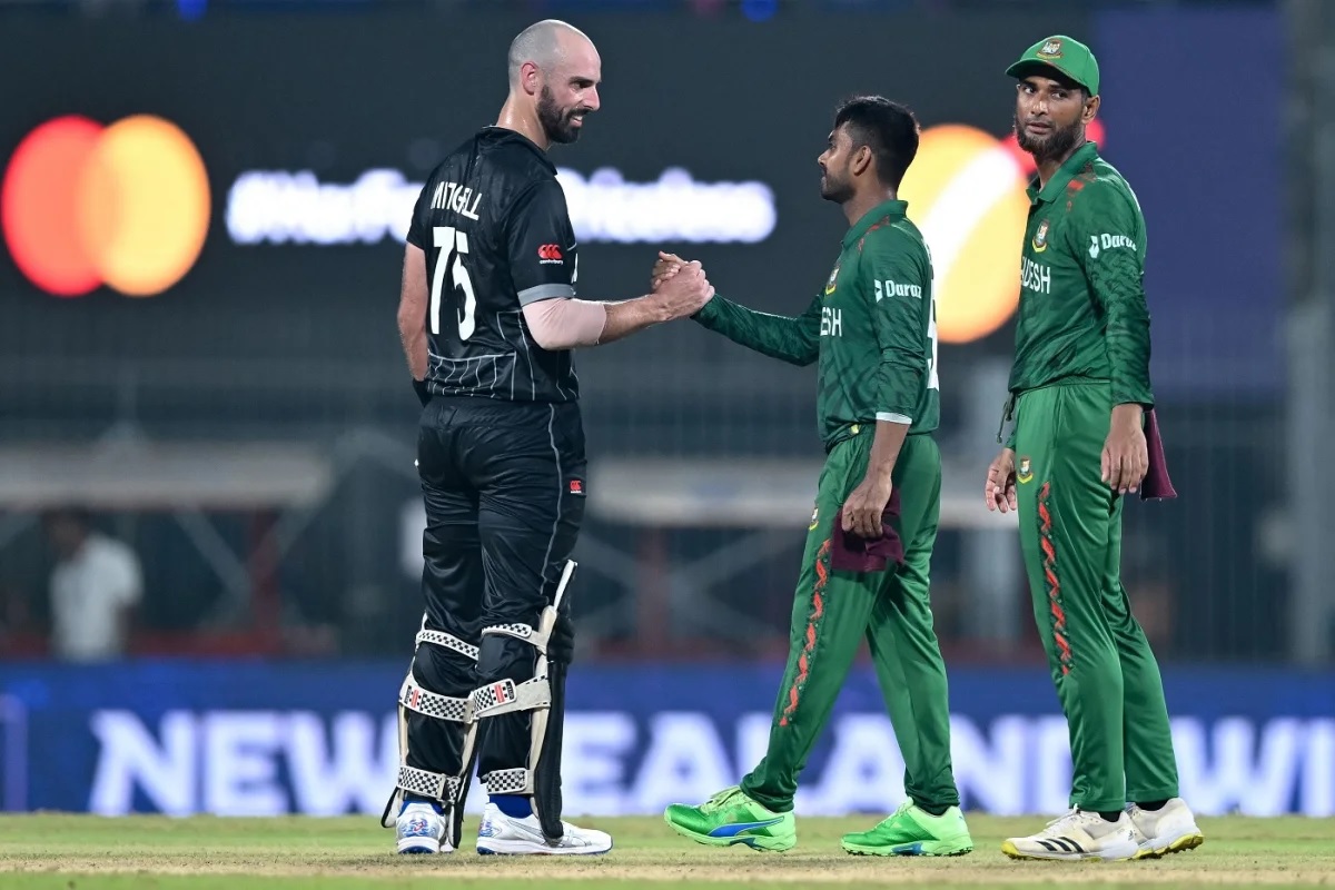 নিজের দ্বিতীয় ও ইনিংসের তৃতীয় ওভারে রাচিন রবীন্দ্রকে মুশফিকুর রহিমের কাছে তালুবন্দি করেন মুস্তাফিজ। ১৩ বলে ৯ রান করে সাজঘরে ফেরেন রবীন্দ্র। তার বিদায়ের পর ক্রিজে আসেন কিউই অধিনায়ক কেন উইলিয়ামস।