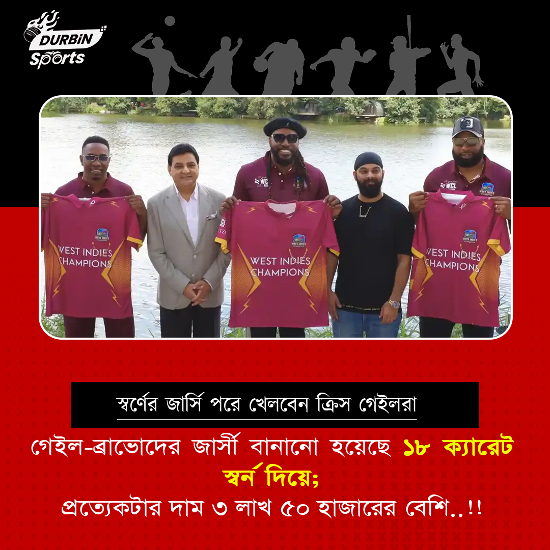 ক্যারিবিয়ানরা বরাবরই খুব সৌখিন, সোনা ব্যবহার, অলংকার ব্যবহার—এগুলো যেন গেইল, ব্রাভোদের নিত্যদিনের কাজ। শখের ছাপ একে দিতে জার্সিতেও এবার ব্যবহার করা হচ্ছে স্বর্ণ।