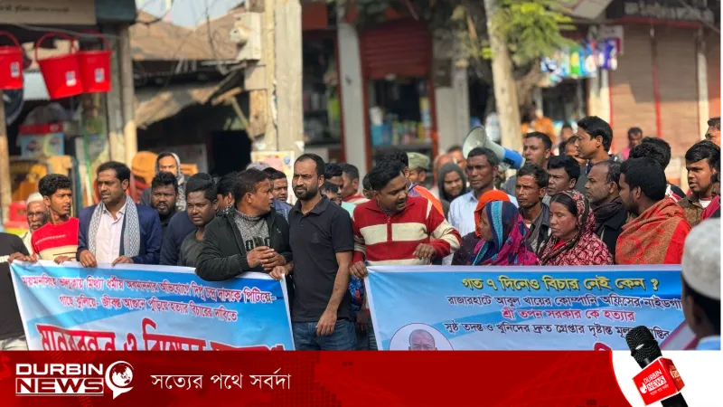 রাজারহাটে তপন সরকার হত্যা: সুষ্ঠু তদন্ত ও খুনিদের গ্রেপ্তারের দাবিতে মানববন্ধন